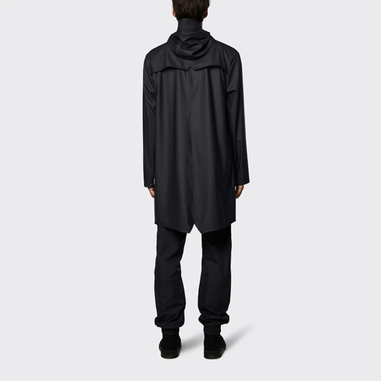 Long Jacket is a longer version of Rain’s classic design, Jacket. This ever-contemporary unisex rain jacket delivers high functionality in a minimal silhouette. Features include double welded slanting flap pockets, adjustable cuffs and a fishtail hem. The look is finished with snap fastenings, under-arm eyelets, and a back yoke with concealed vents.