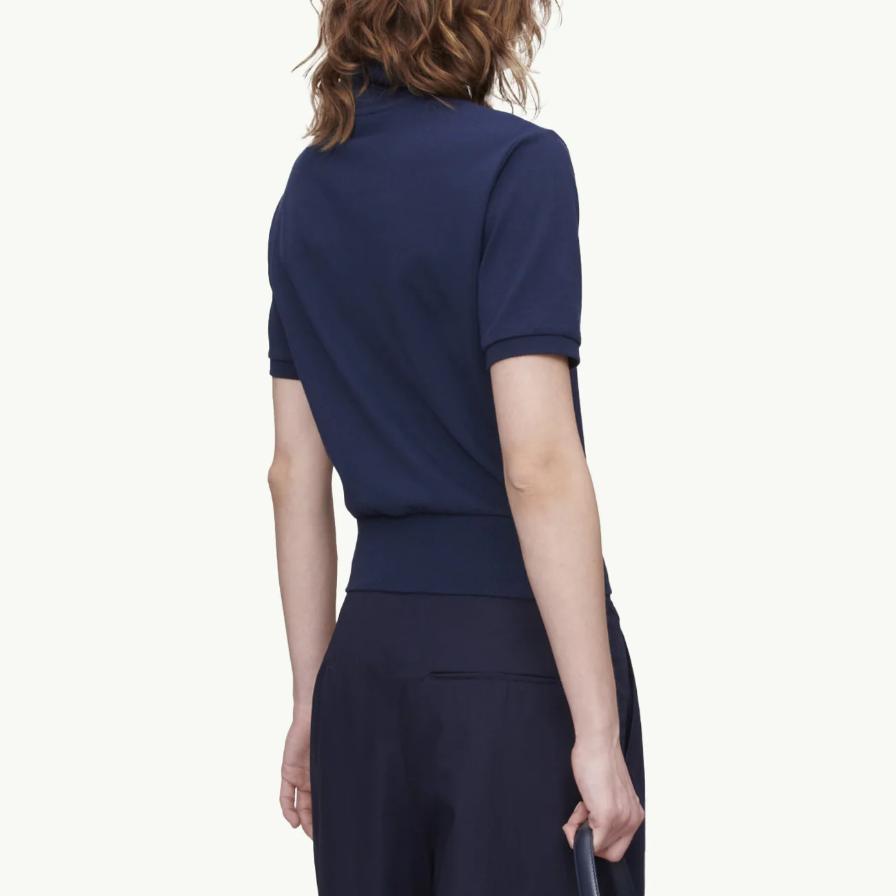 The Oceane Polo Shirt in dark navy, made from an orgnanic pique cotton.