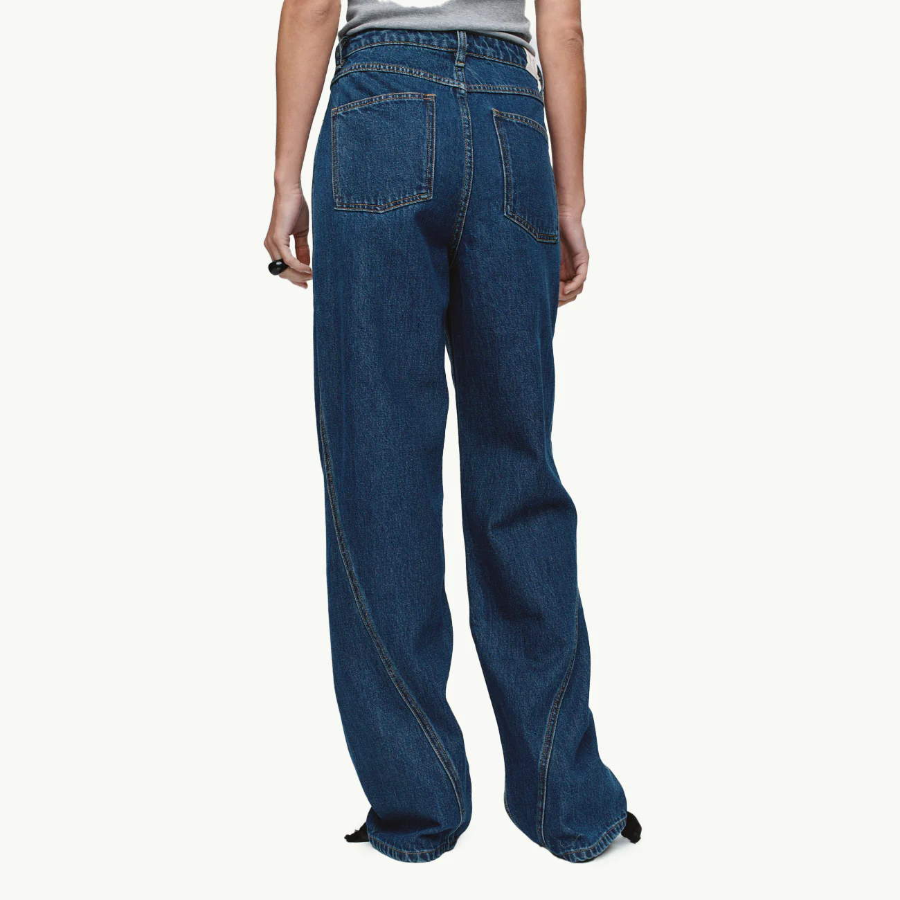Designed with a mid-rise waist and a relaxed fit through the hip and leg. The Relaxed Curve Jean features include five-pocket construction, zip fly with button closure and engineered curved side seams that create a sculptural shape. Finished with topstitching for structural reinforcement and belt loops at the waist.