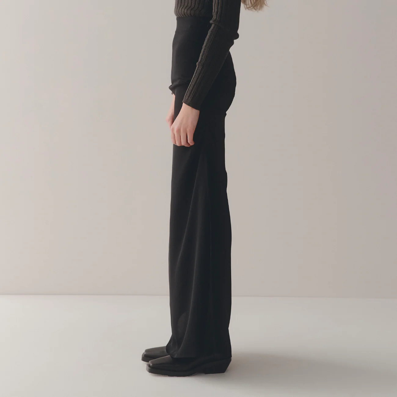 The Rowie is crafted in 100% Silk Crepe de Chine and is a full-length falling skirt just above the ankle. This skirt has a straight silhouette with a gathered detailing on one side which is finished with a split and creates a beautiful, draped detailing through the front. This skirt sits on a flat waistband with an invisible zip closure at the side.