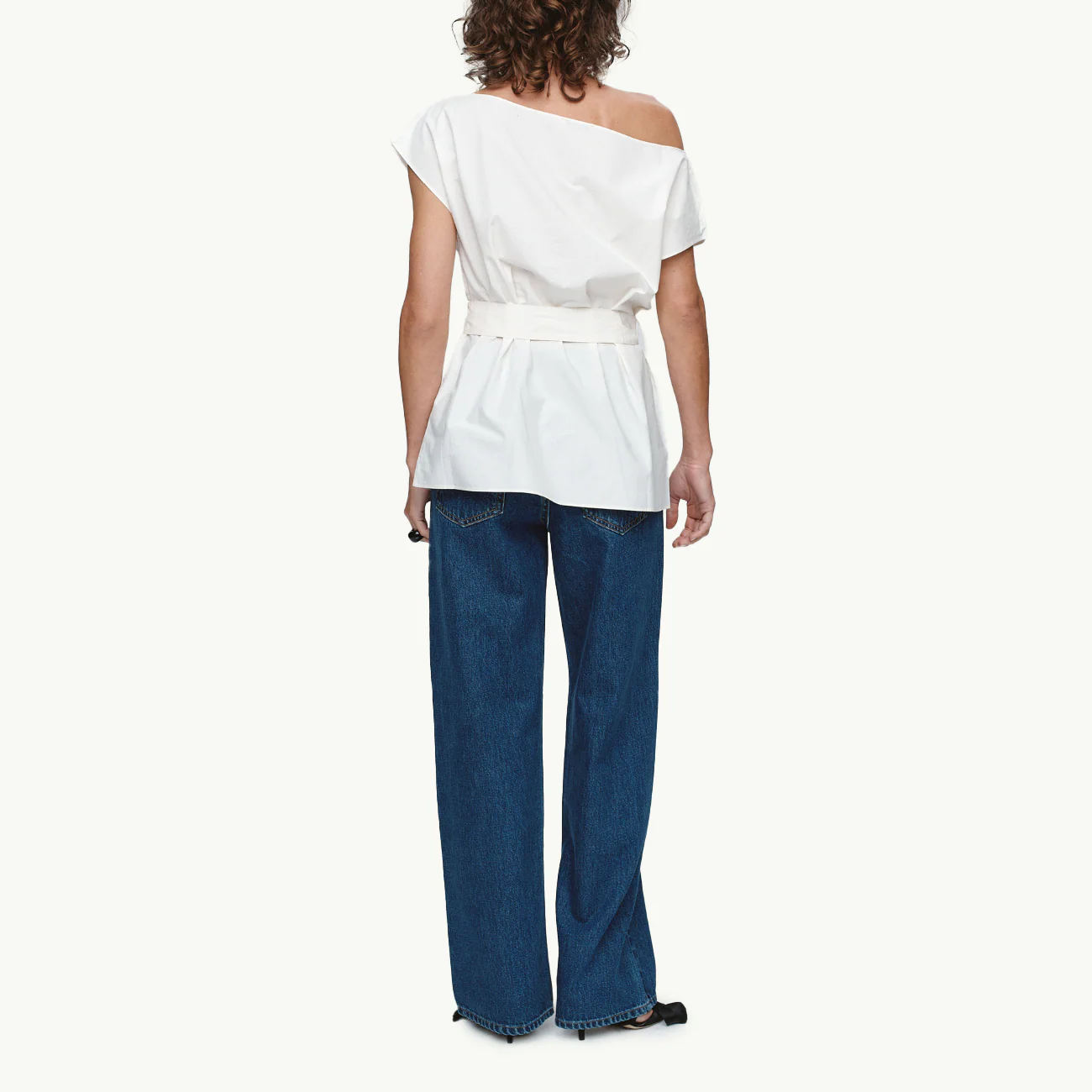 The Jude Top is crafted in a lustrous jacquard that catches the light with every movement. The tonal floral motif is woven into the fabric creating a rich depth that reveals itself up close. Designed to drape asymmetrically across the body, it falls off one shoulder. Clinched softly at the waist with a matching self-tie, creating structure without interrupting the fabric’s natural movement.