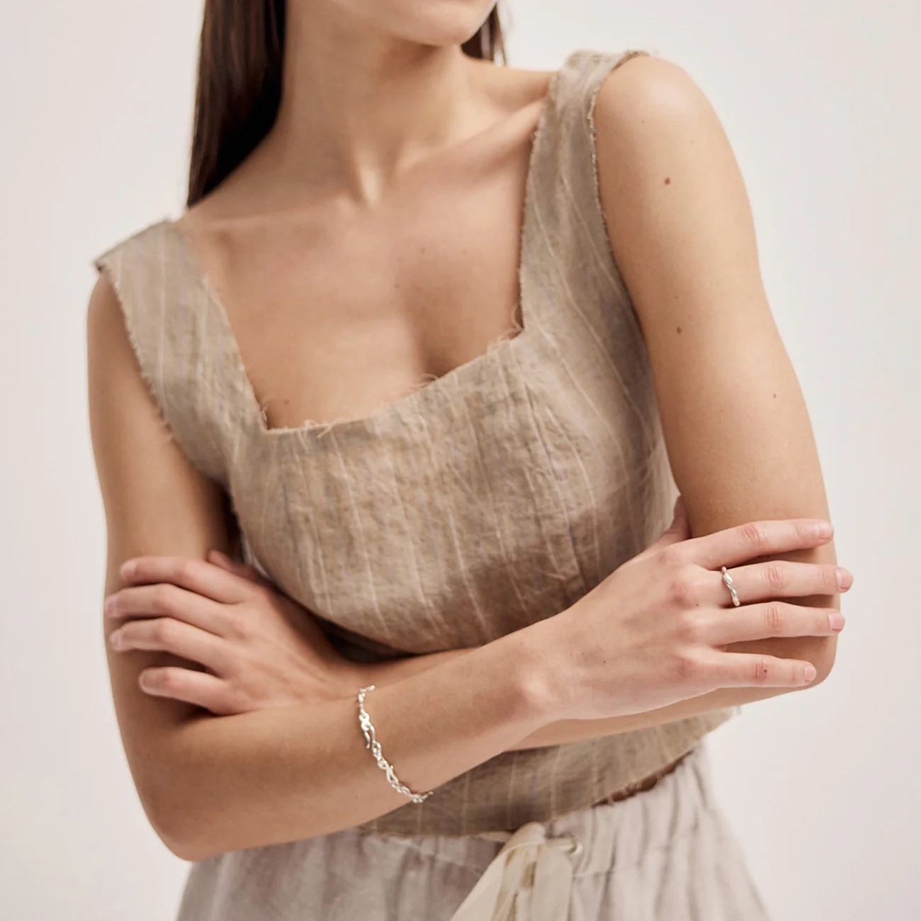 The Eloise Top is based off our adored Anouk Dress. It features the same feminine square neck at the front and back and is fitted through the chest, finishing at a flattering cropped length. It features a centre back invisible zip fastening. This version is crafted in a plaid linen.