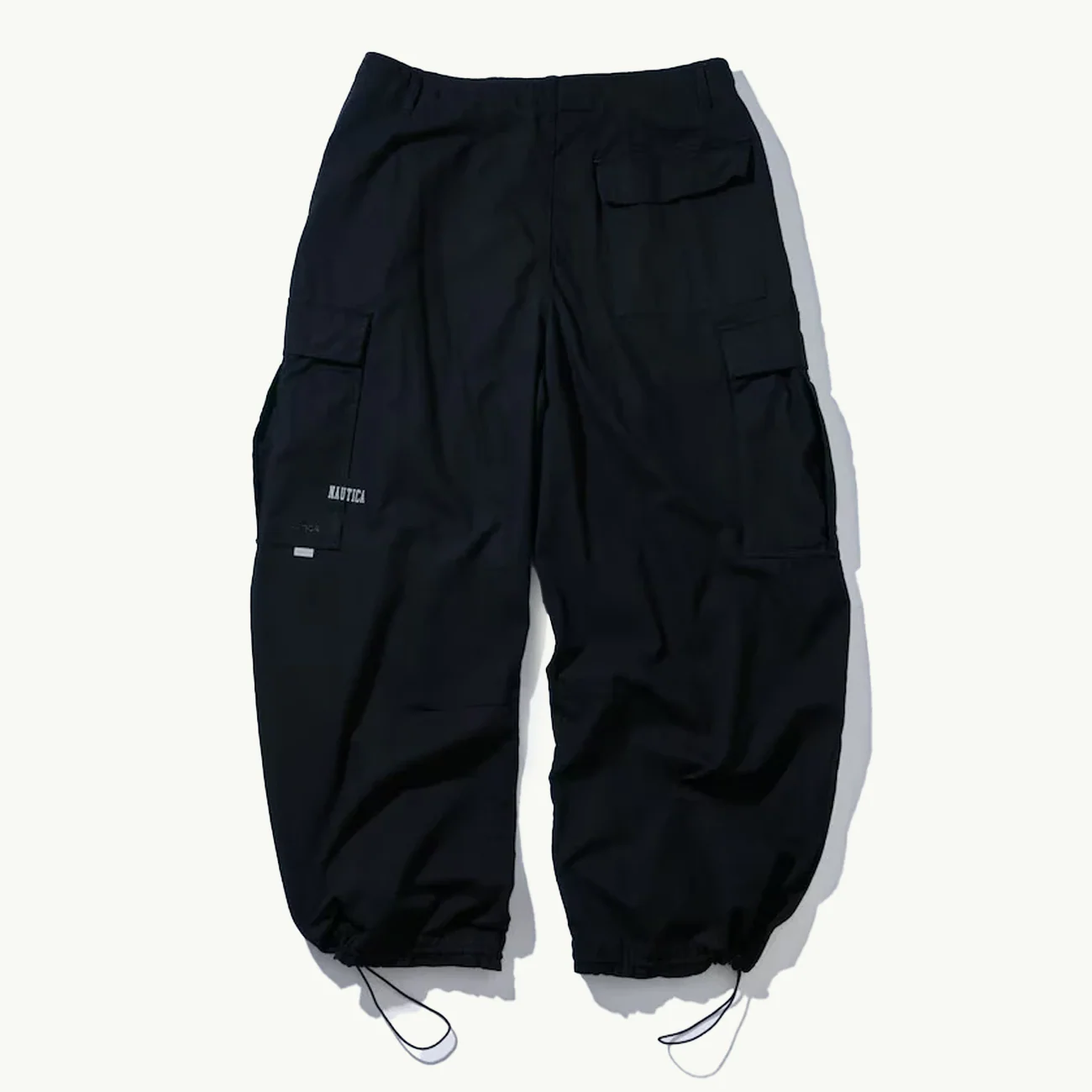 The popular Super Wide Curve Cargo Pants from Nautica Japan are crafted from durable cotton ripstop fabric. Their wide silhouette provides a comfortable option for everyday wear and features an elastic pull tab at the hem.